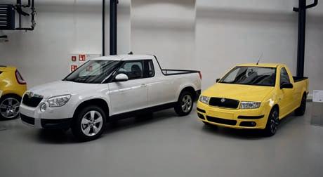6 Dva prototypy Pick-Up, větší Yeti (2012) s využitím dílů VW Caddy Maxi vzadu, a Fabia (2007), vyrobená ve čtyřech kusech pro vnitřní dopravu