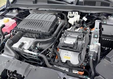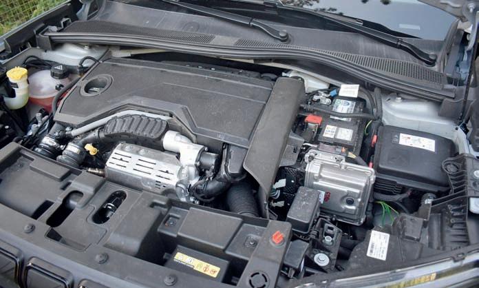 výrobce urazí až 50 procent vzdálenosti ve městě čistě elektricky a malý akumulátor 0,9 kWh je pod sedadlem řidiče. Verze 1.2 Turbo e-Hybrid 110 s pohonem jen předních kol má shodnou poháněcí soustavu vpředu, ale výkon tříválce byl snížen ze 100 na 74 kW (ze 136 na 100 k), zatímco výkon elektromotoru zůstal shodných 21 kW (28 k). Kombinovaný výkon se tak snížil na 81 kW (110 k), vzadu je nepoháněná náprava s torzní příčkou.
