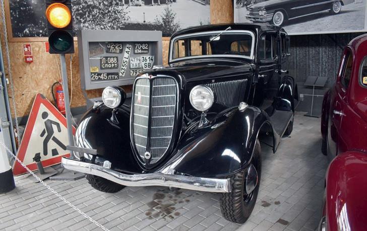 čoval s typem ZiS110 (od roku 1945), který ovšem byl kopií Packarda, jenž si sovětský vůdce Stalin velmi oblíbil. Šestilitrový motor měl tentokrát vrtání a zdvih ø 90 x 100 mm, zatímco Packard 180 sázel na rozměry válců ø 89 x 100 mm a dával výkon 118 – 121 kW (160 – 165 k)/3500 – 3600 min1 proti 103 kW (140 k)/3600 min1 druhé ruské kopie, jež přežila ve výrobě v Moskvě až do roku 1958. Ford Model A byl na základě americké pomoci prvním velkosériově vyráběným ruským automobilem coby GAZA, vyjížděl ze závodu GAZ v Gorkém (Nižnyj Novgorod) od počátku třicátých let. V muzeu je vystaven americký originál z roku 1930, který do Lotyšska dovezl dealer Gunnar Haagensen z Rigy. Nákladní verze GAZAA (Ford AA) vyjížděla z linky v Nižném Novgorodě od 1932, do roku 1938 vzniklo 409 985 vozů v základním provedení a další ve speciálních verzích jako je vystavený exemplář dobro