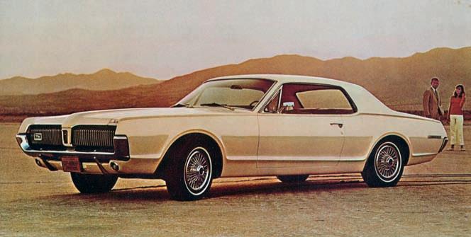 Mercury Cougar 1967, první a stylisticky nejzdařilejší na základě úspěšného vozu Ford Mustang (motor V8 4,7 nebo 6,4 litru)