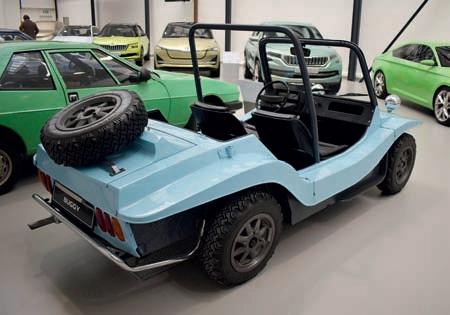 2, 3 Škoda Buggy (typ 736) podle návrhu designera Josefa Čecha vznikla na podlahové plošině Š 110 L v odborném učilišti závodu (1975)