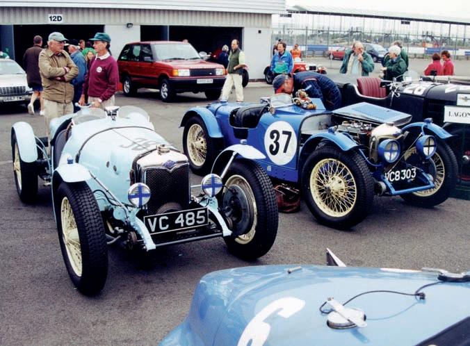 Riley Nine Brooklands 1,1 Litre na Coys Historic Festival 2000 v Silverstone (vlevo chassis No.8049 z roku 1929, vpravo další z roku 1930)