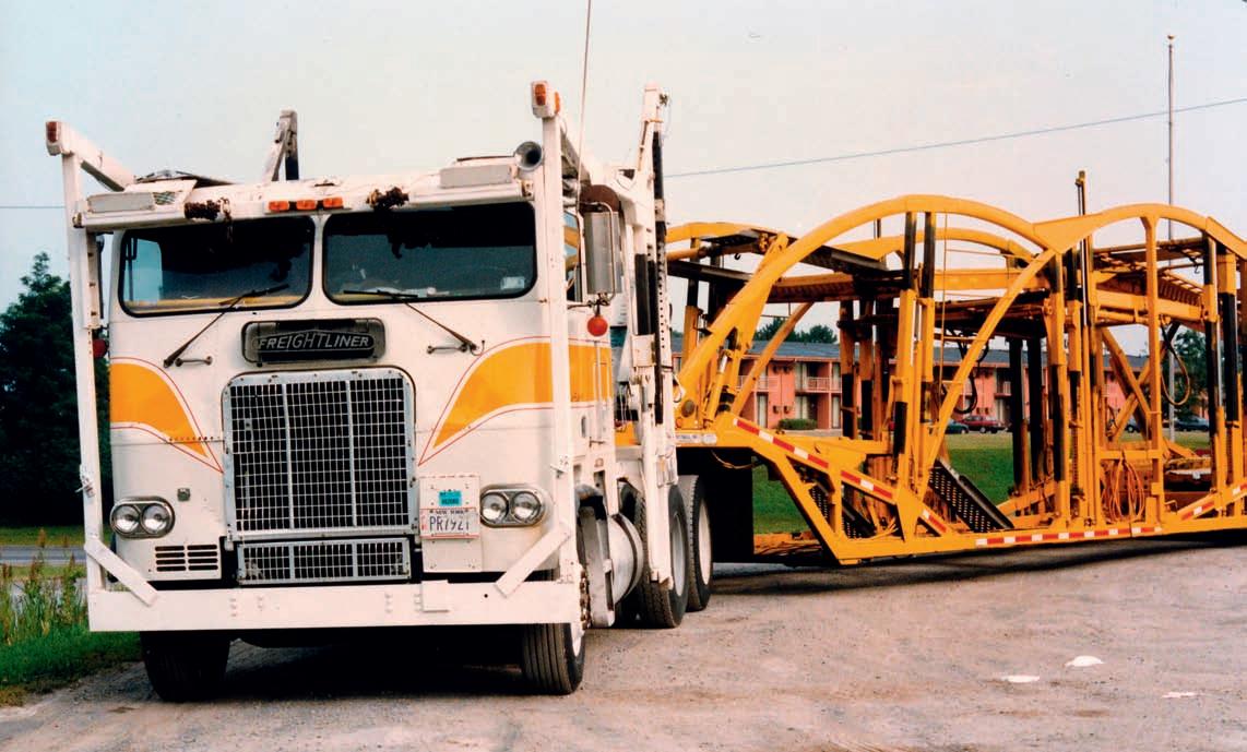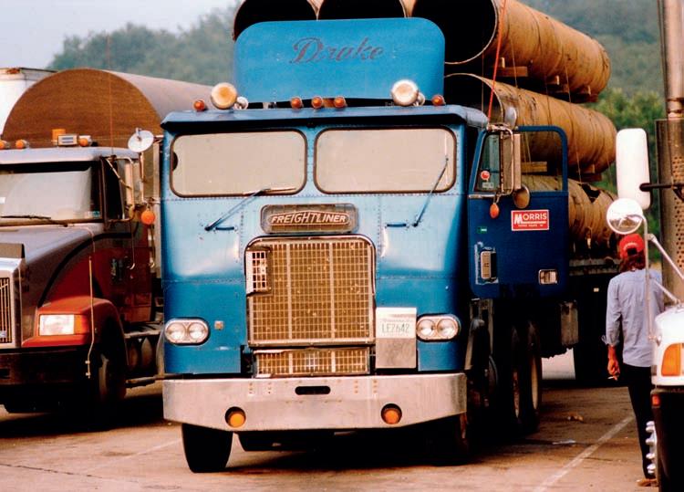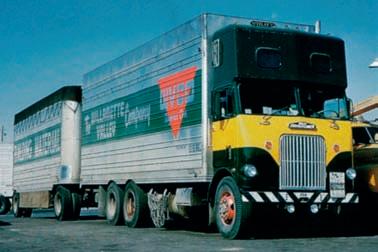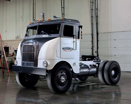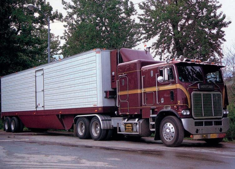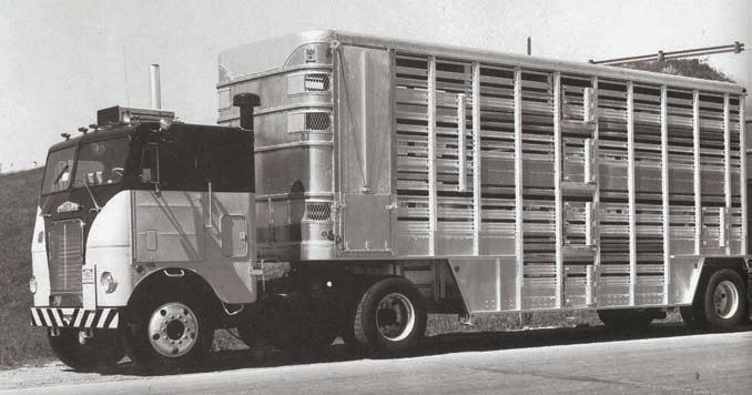 Starší White-Freightliner Cabover z konce padesátých let coby velkoobjemový přepravník zboží s délkou soupravy 18,3 metru