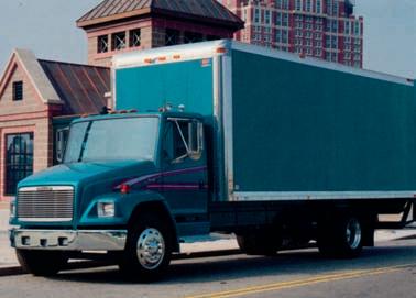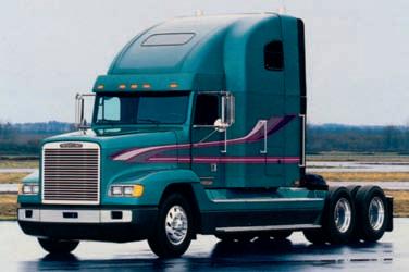 4 Freightliner COE (Cab-Over-Engine) s plošinovým návěsem na truckstopu v Ohiu, pokračování původních bezkapotových typů 5 Pod taktovkou Mercedes-Benz Nutzfahrzeuge se změnil výrobní program, Freightliner FLD-120 z roku 1994 s motorem Cummins, Detroit Diesel nebo Caterpillar je dalším vývojem středně těžké řady Medium Conventional 6 Freightliner Business Class uvedl na americký trh motory Mercedes-Benz OM 366LA o výkonu 154 kW (210 k)