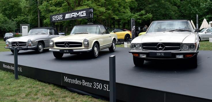 Automobilová slavnost Legendy, která je jakýmsi českým Festivalem rychlosti ve stylu Goodwoodu, se vrátila o posledním květnovém víkendu po dvouleté vynucené pauze z důvodů koronavirových restrikcí. Promotér Lubor Kos buduje tento podnik od roku 2013, nyní se slavnost koná na výstavišti v pražských Holešovicích, což se letos podařilo i přesto, že tam panuje čilý stavební ruch pro dostavbu vyhořelé části centrálního paláce. Návštěvníci viděli neobvyklý soubor historických i současných vozidel, některé značky zvolily vlastní reprezentaci, jiné byly zastoupeny prostřednictvím značkových klubů. Letošní téma výstavy bylo Italská vášeň, a tak vládly především vozy Ferrari. Ve spolupráci s autorizovaným dealerem Scuderia Praha se představily vzácné typy včetně unikátních modelů, vyráběných pouze kusově, a ve spolupráci Shell ČR se představil show car Ferrari SF1000 formule 1. Legendy SL-Klasse, zleva Mercedes-Benz 190 SL, 230 SL a 350 SL