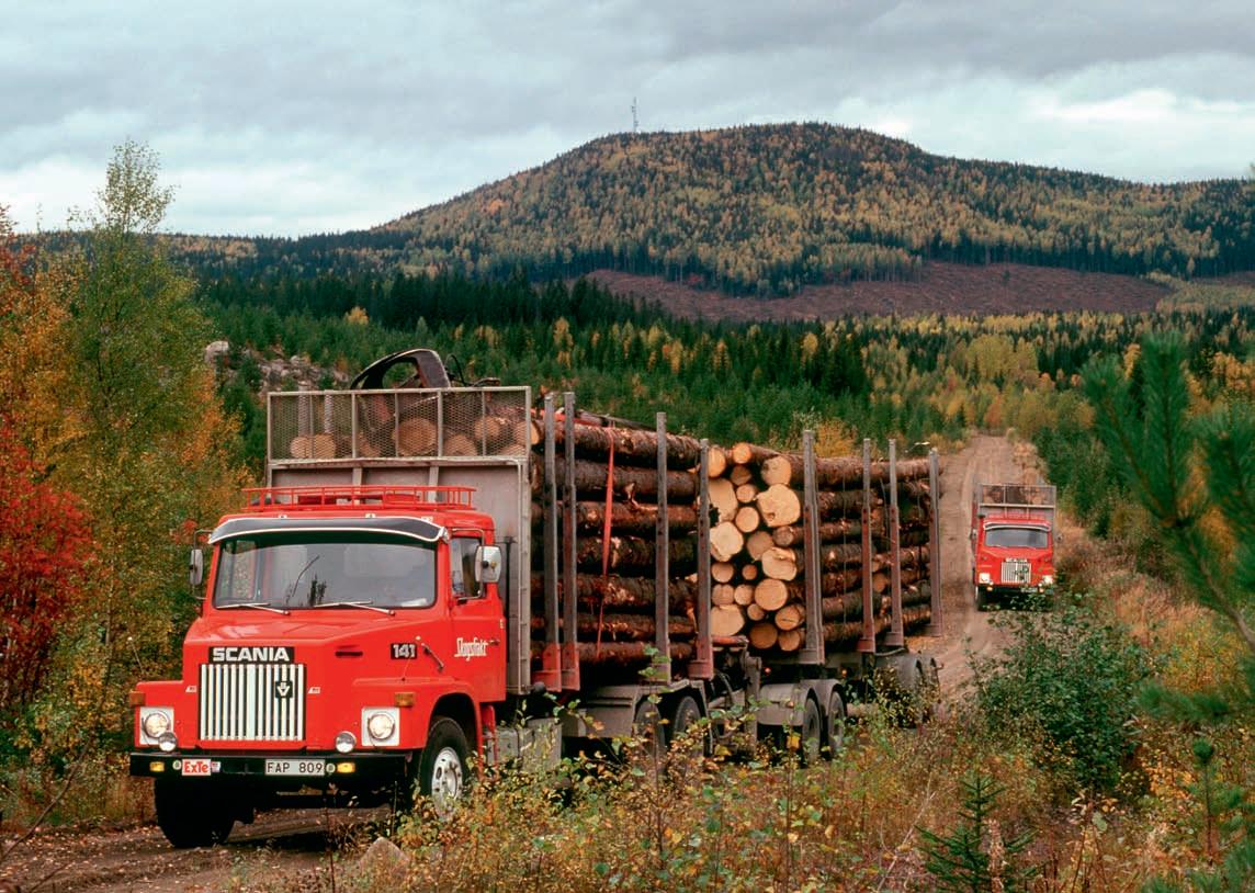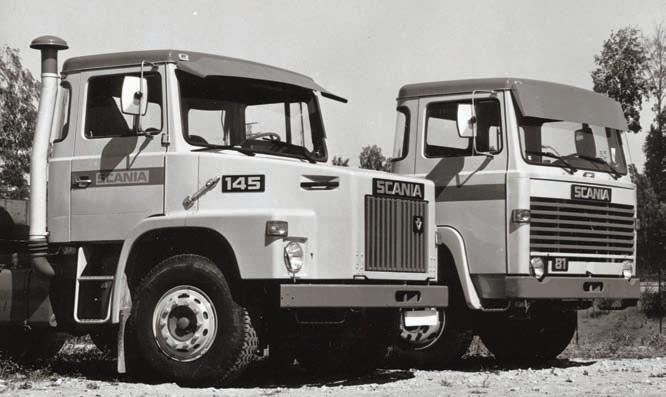 podélných listových per. Konstrukce tedy konvenční, ale dostatečně robustní. Rozvor náprav podle typu 3400 až 5400 mm. Užitečná hmotnost 8 – 10,5 tuny (4x2), resp. 12 – 15 tun (6x2, 6x4). Přestože Scania už kapotové typy dávno nevyrábí, řada L76 se stala praotcem dnešních těžkých vozidel. Podobně byla koncipována střední L56 (6 – 8 t, LS: 9 – 11 t), ovšem s menším motorem D8, který z objemu 7800 cm3 (ø 115 x 125 mm) nabízel výkon 107 kW (145 k)/2400 min-1 a točivý moment 500 N.m/1200 min-1 V téže době byly z nákladních vozů odvozeny autobusové podvozky s motory vpředu (typy B56, BF56, B76 a BF76), záhy se objevil také dálkový integrální typ IC76 (se samonosnou karoserií) s motorem DS11, uloženým v zádi napříč, hojně využívaný pro dlouhé trasy v Jižní Americe. Samozřejmě vývoj od jubilejního roku 1966 nabral další vysoké obrátky. Na třetí straně obálky představujeme první turbokompoudní motor, který Scania uvedla v roce 1991; zvýšenou účinnost zajišťovalo využití výfukových plynů nejen pro přeplňování, ale i pro zdroj přídavného výkonu (Power Turbine).