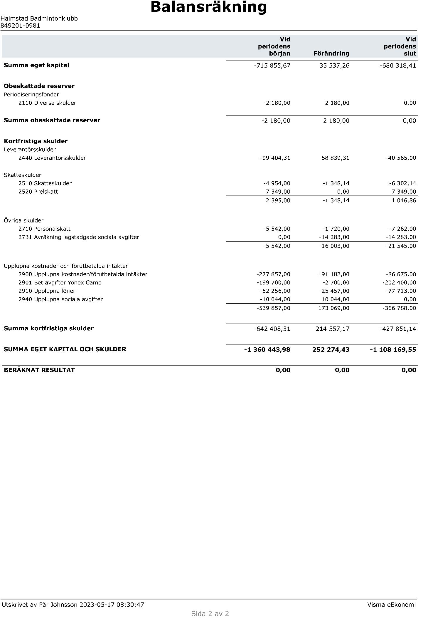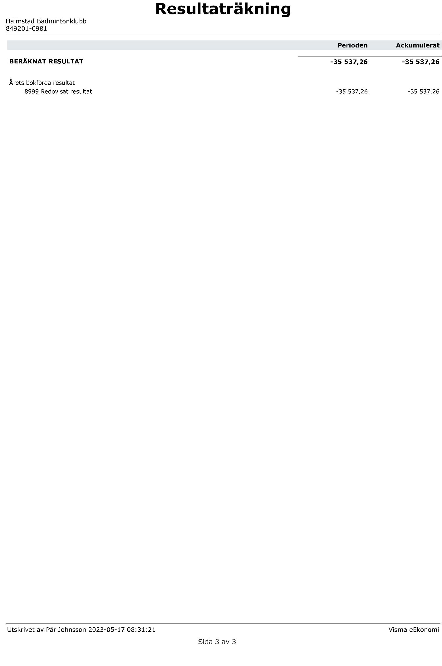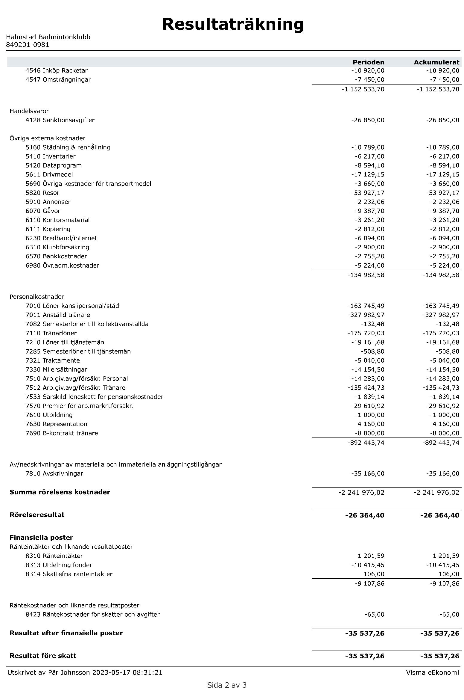 Totalt hamnar vi på ett resultat på -35 000 vilket vi ändå tycker är OK med tanke på den svårbedömda situationen efter Corona och den höjda prisbilden under året.
