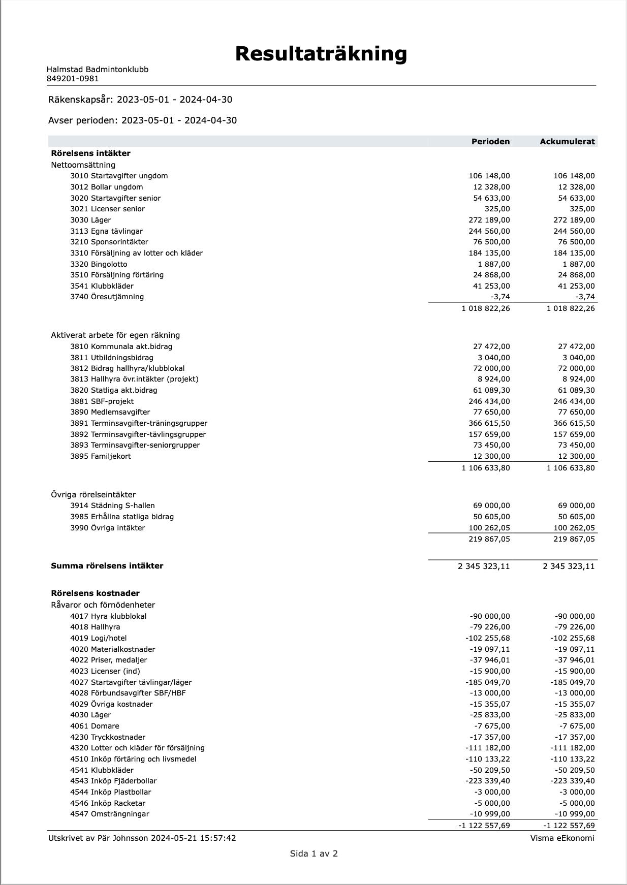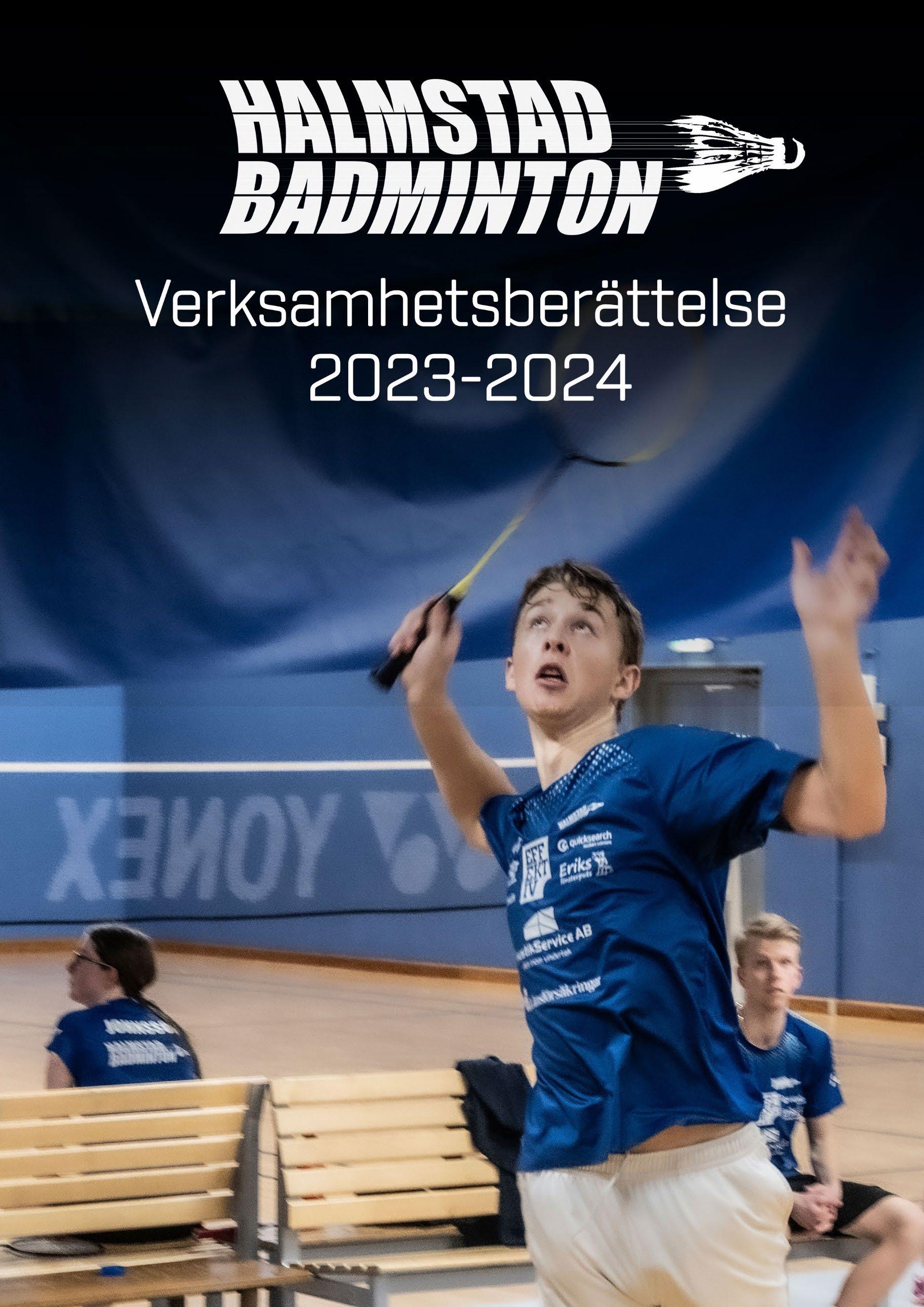 Sida 3 av 37 Innehåll Styrelsen sammanfattar säsongen ............................................................................................. 4 Organisation ............................................................................................................................... 5 Statistik ....................................................................................................................................... 6 Utvecklings- och projektarbete 7 Träningsverksamhet ................................................................................................................... 9 Badmintonskolor – Söndrum ................................................................................................... 11 Tävlingsverksamhet 14 Utbildningar.............................................................................................................................. 21 Arrangemang ............................................................................................................................ 21 Omvärldsbevakning .................................................................................................................. 25 Lägerverksamhet 26 Hallands Badmintonförbund .................................................................................................... 26 Kalle Overgaard har lämnat oss ............................................................................................... 27 Verksamhetsplan 2024/2025 28 Ekonomi 31