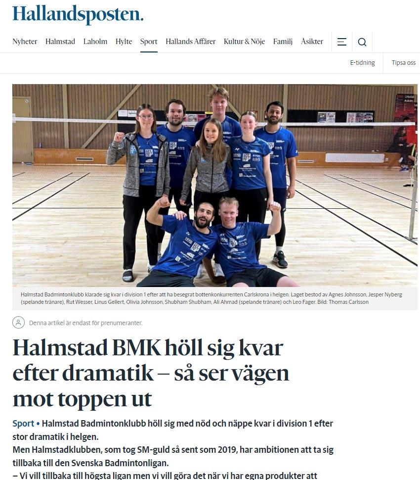 Efter utträdet ur ligan har inte Hallandsposten bevakat oss i samma utsträckning. Ett fåtal artiklar har skrivits om vårt förstalag.