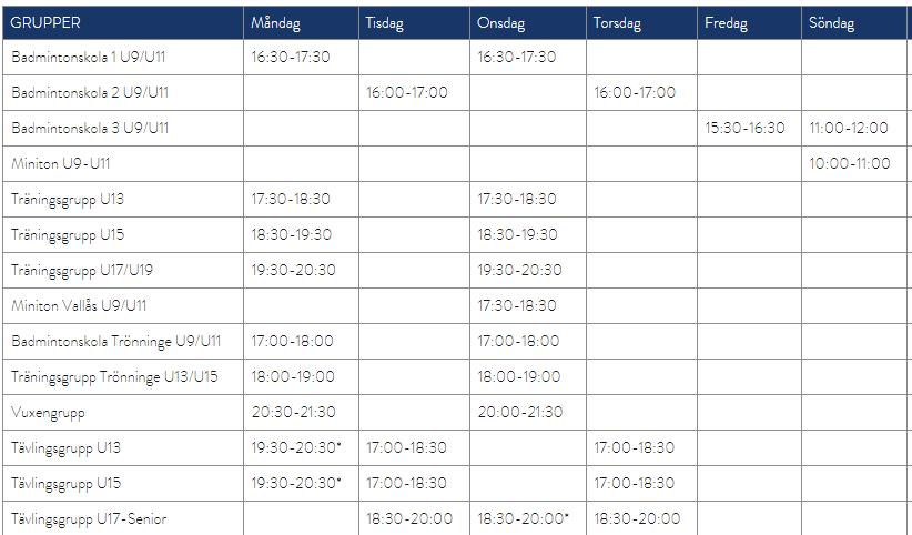Träningstider 2023/2024