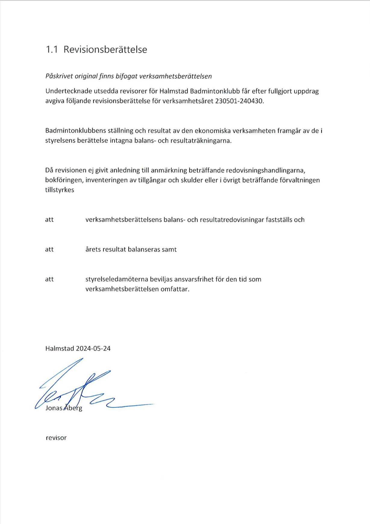 Revisorer under året har varit Jonas Åberg.