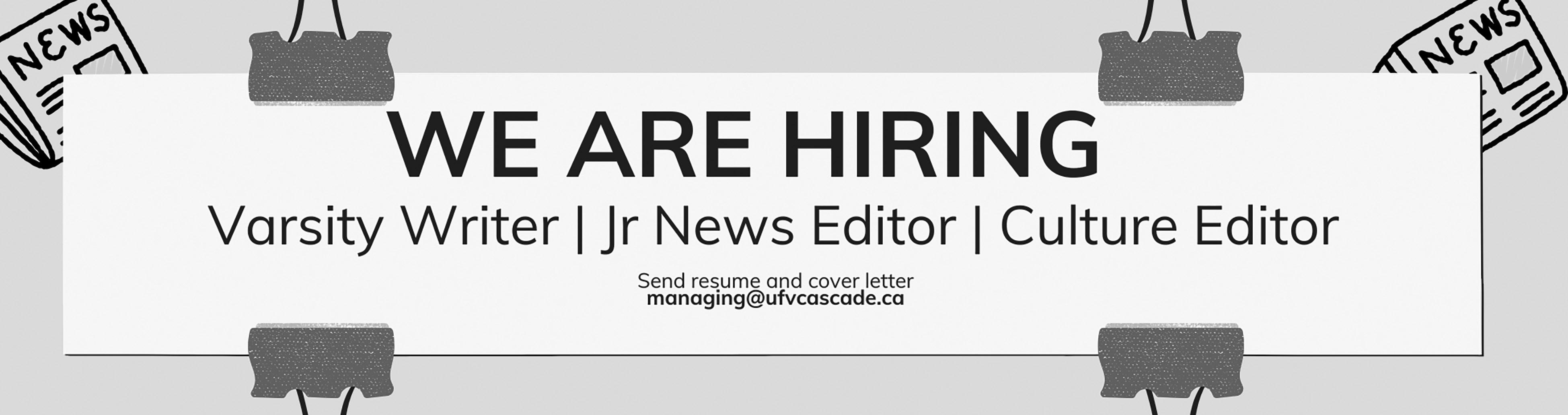 In order to be published in the newspaper, all work must first be approved by The Cascade’s editor-in-chief and the corresponding section editor. The Cascade reserves the right to edit submissions for clarity and length and will not print any articles or be a platform for any contributor or contractor who has shared racist, sexist, homophobic, or libellous content online in any form. Letters to the editor, while held to the same standard, are unedited, and should be under 200 words. Opinions expressed do not necessarily reflect that of UFV, The Cascade’s staff and collective, or associated members.