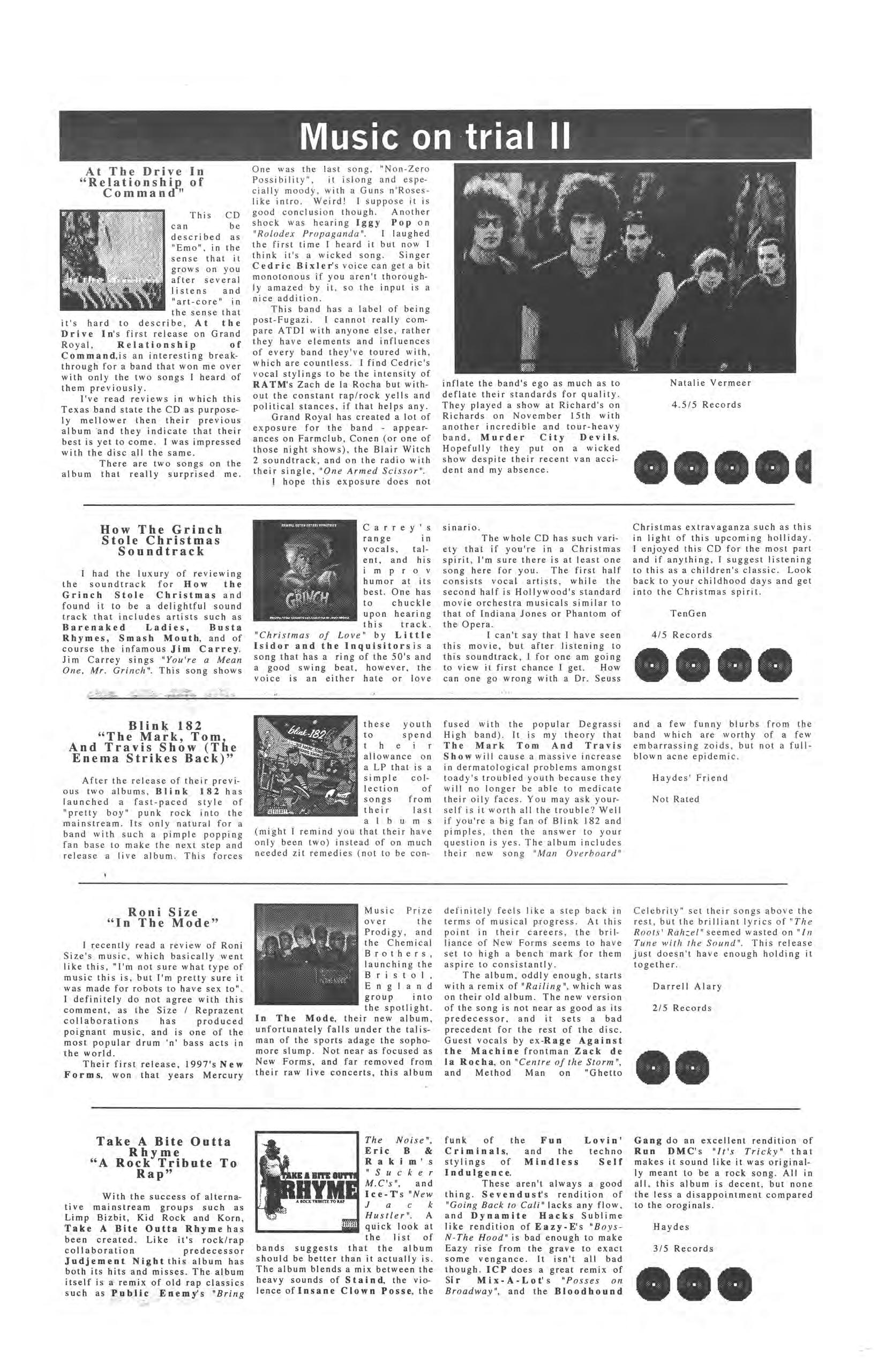 I had the luxury of reviewing the soundtrack for How the Grinch Stole Christmas and found it to be a delightful sound track that includes artists such as Barenaked Ladies, Busta Rhymes, Smash Mouth, and of course the infamous Jim Carrey. Jim Carrey sings "You're a Mean One, Mr. Grinch". This song shows