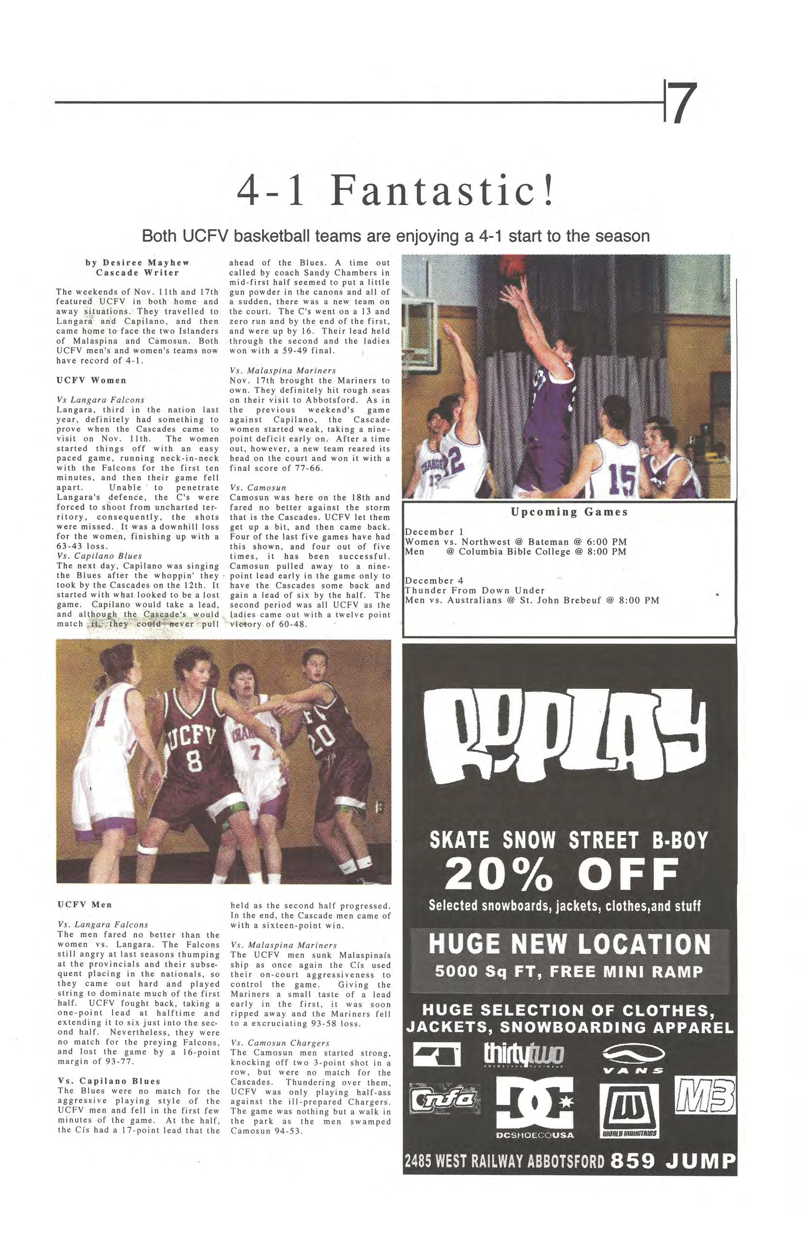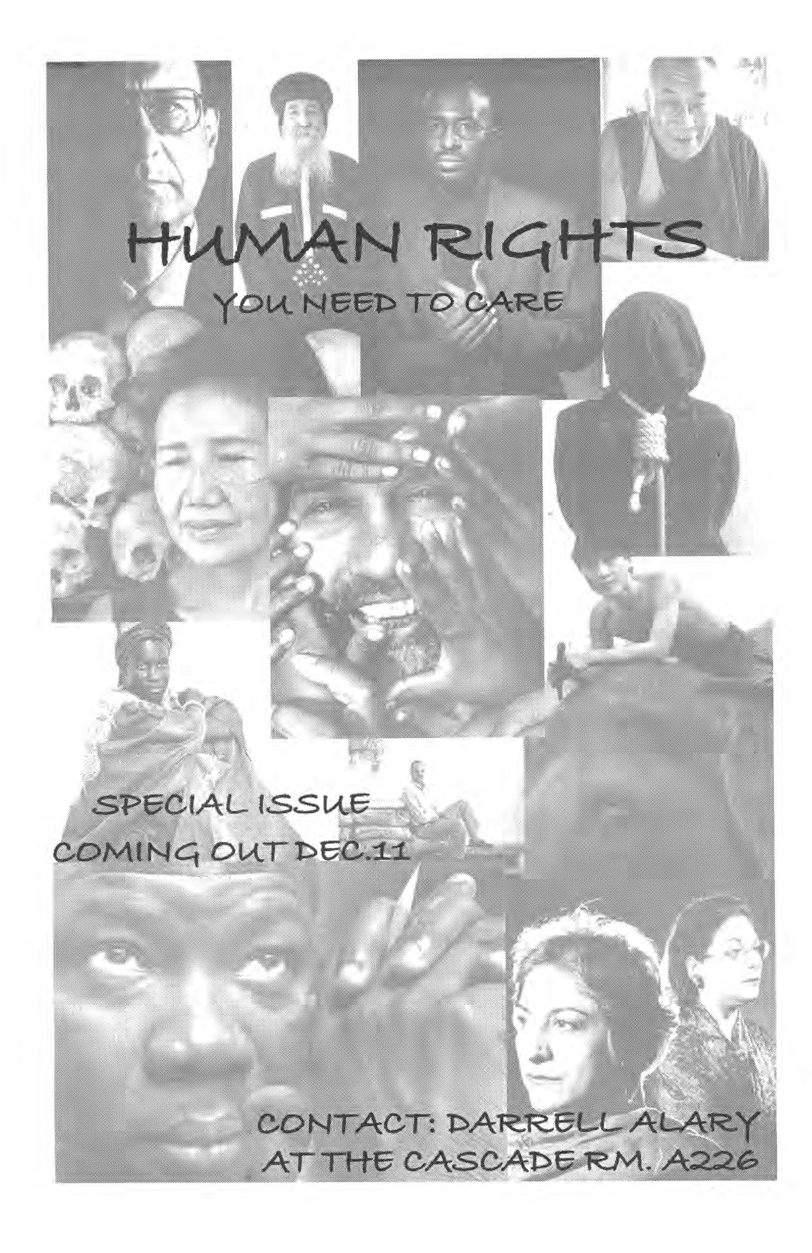 any other student that may feel the content in the issues of the Cascade are not re presen tati v e of what st udents want or how they feel to join the collective structure the Cascade operates under. Every· student at UCFV is welcome to take part in the production of UCFV's student newspaper and the decision to put out a specialty issue in October was made from the students already taking part. Early in the year a decision was made to put out four specialty issues, and the topics were put to vote by the volunteers present at our regular weekly meetings. Our next specialty issue will be hitting