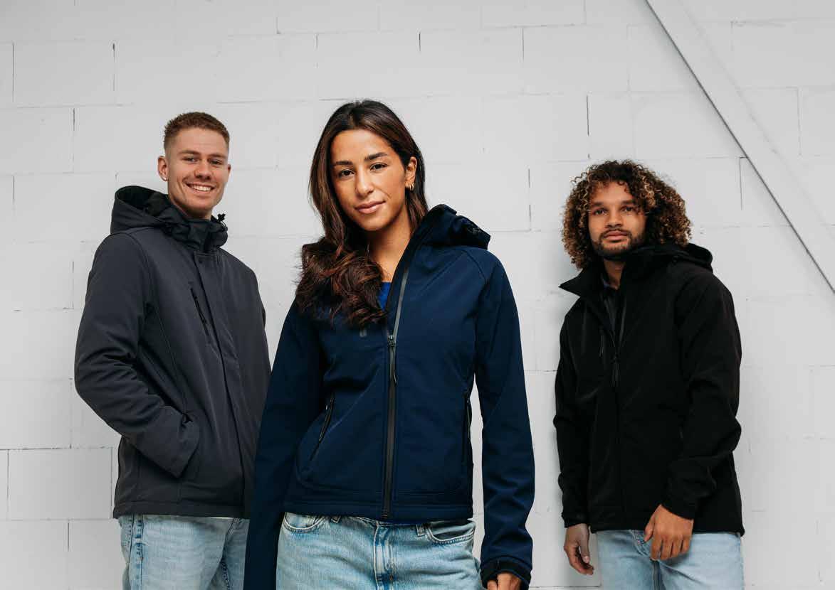 T-shirts and polo’s with elastane, heavier weight sweaters, fitted shirts with elastane and functional softshell jackets. That’s what this collection consists of and what gives this brand that extra touch of luxury.