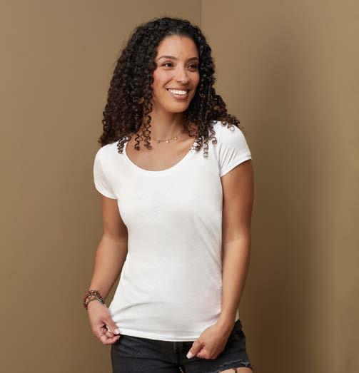 A high-quality material made from the natural raw material cellulose. The fibre is very soft to the touch, moisture absorbent and very breathable. It can be both glossy and matt and thus take on the look of wool, silk or cotton. T-shirts with a viscose share drape fluidly around your body, creating a premium wearing-comfort as well as an elegant, flattering silhouette.
