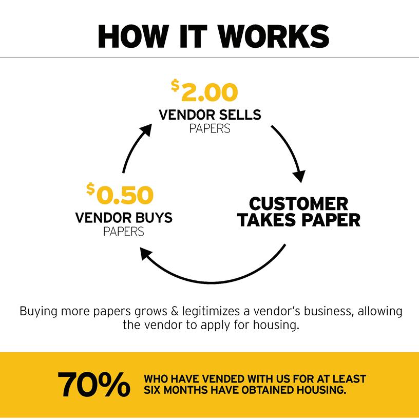 Nuestros mas grandes aficionados no entienden esto. Como un rayo sin trueno, ellos ven la humanidad de el vendedor pero no comprenden el modelo. Un ejemplo: En el 2013 durante un evento de recaudación de fondos, uno de los representantes de una de las fundaciones más grandes de Nashville, exclamó: “Soy un gran aficionado, y es por eso que nunca me llevo el periódico.” Al cual nosotros respondimos: “Y es por esa razón por la cual estamos recaudando fondos.” BOOM! Y se escuchó el trueno! El pagar por el periódico y llevárselo hace que nuestro sistema funcione, el no llevarse el periódico rompe nuestro sistema. Y el vender el papel dos veces no da fondos para el periódico, pero da fondos para casas y causa cambio. BOOM! Nuestros vendedores reportan sus ventas para calificar para alojamiento subvencionado y hasta para una casa regular, depósitos e hipotecas. Ellos no consideran el que usted compre el periódico como una “contribución” pero más lo consideran como una venta.