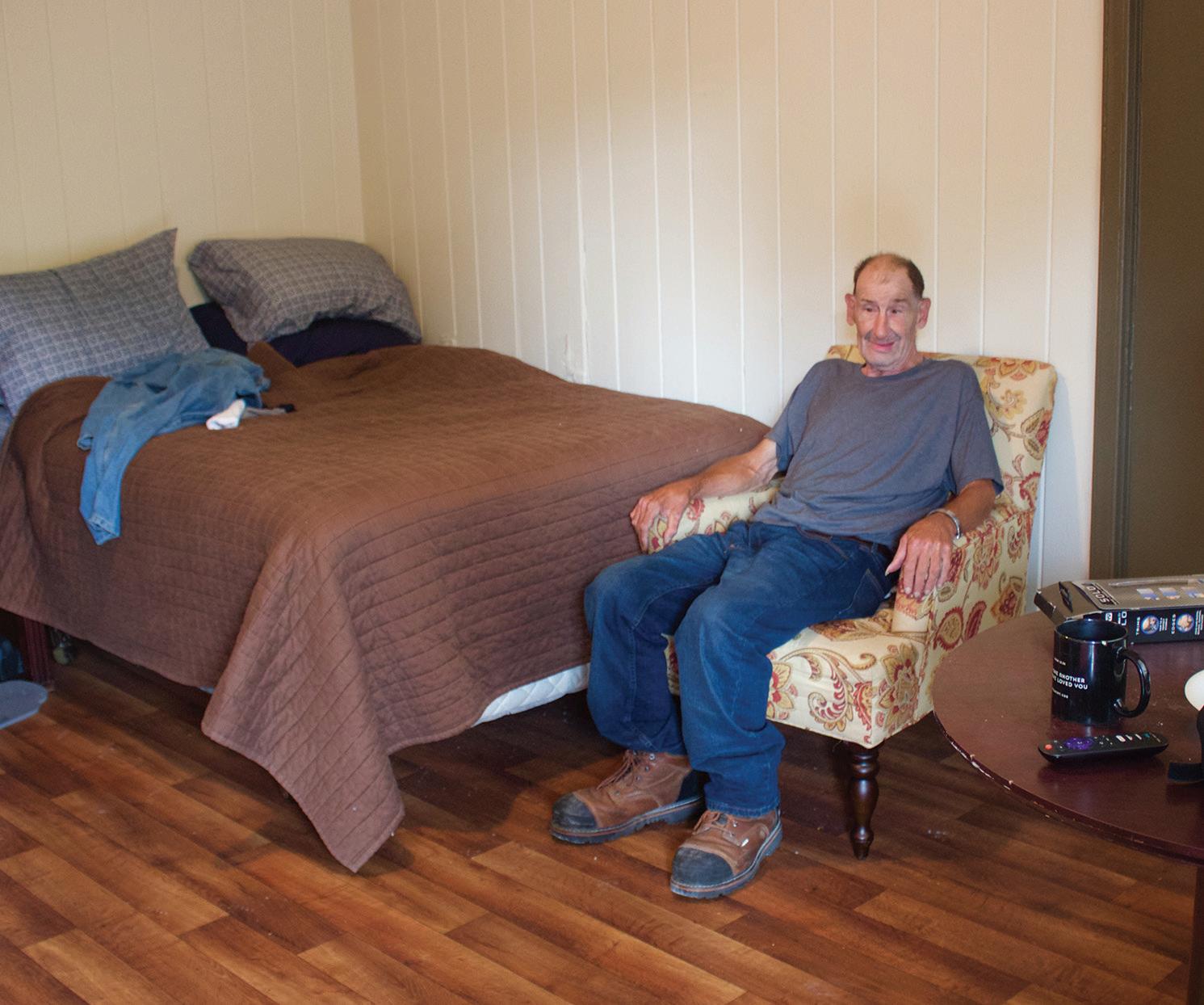 Paul is legally blind, which gives him trouble with eye contact when customers walk by. He has a rare disorder that has made his vision close in, which started when he was in his 30s, but he loves talking to people. He is still able to navigate his world and maintain his independence. Paul also suffers from Chronic Obstructive Pulmonary Disease (COPD), which affects his breathing. Having cool air to breathe in his new home helps.