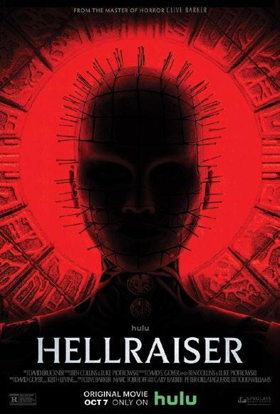 (1987) introduced viewers to a dark dimension created by author Clive Barker in his novella called The Hellbound Heart . The fran chise centers on a bizarre puzzle box that can open a gateway to the hellish realm of the Ceno bites, the Lament Configuration. Still with me? The Cenobites are former humans who’ve become demon-like monsters with appe tites for torturing souls. Hulu’s new movie paves its road to hell with themes of addiction and finds actress Jamie Clayton star ring as the bald baddie Pinhead who became a pop culture icon thanks to original actor Doug Bradley’s chilling performances in decades of Hellraiser flicks. Go back to Hellraiser on Hulu on Oct. 7.