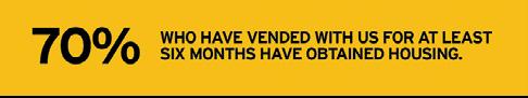Starting in 2019, our C.O.V.E.R. Program (Creating Opportunity for Vendor Employment, Engagement, and Resources) was the natural expansion of our mission of removing obstacles to housing. We now offer full case management, assistance with housing and rental expenses, addiction recovery, health insurance, food benefits, and SSI/SSDI assistance. We see the onestop-shop team approach radically transforming a vendor's image of self and their place in community.