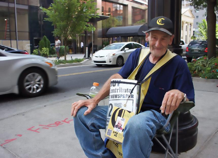 vending, creating microbusinesses and spreading important news. He heatedly demanded that those with power and money do their part to help those experiencing housing insecurity and homelessness in re turn. He fought against the stereo types and clichés — that everyone can just pull themselves up by their bootstraps, or that poverty is a char acter flaw.