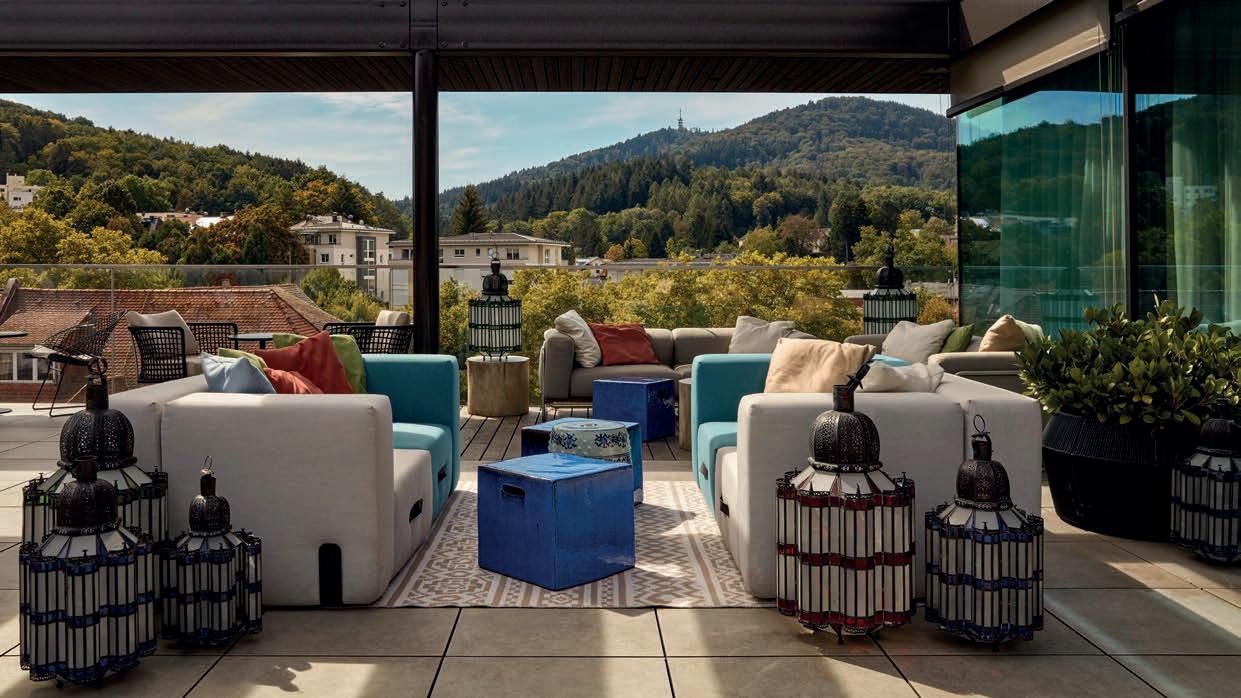 The casino in the Kurhaus is the place where nights in BadenBaden sparkle and shine. The roulette, blackjack and poker tables are all waiting for guests to place their bets. But even if you don’t want to gamble, the building is a stylish attraction from the Belle Époque era. Some claim it is the most beautiful casino in the world. The “Club Bernstein” is a new addition to the place, off ering young night owls a taste of Las Vegas à la Baden with DJ beats. Our favorite spot for sundowners and the like is still the rooftop bar (with an infi nity pool and pan-Asian cuisine) at the luxury hotel Roomers Baden-Baden, and not just because of its fantastic view of the Black Forest mountain range. The atmosphere among the international and local guests is lively and stylish, as is typical of Baden-Baden.