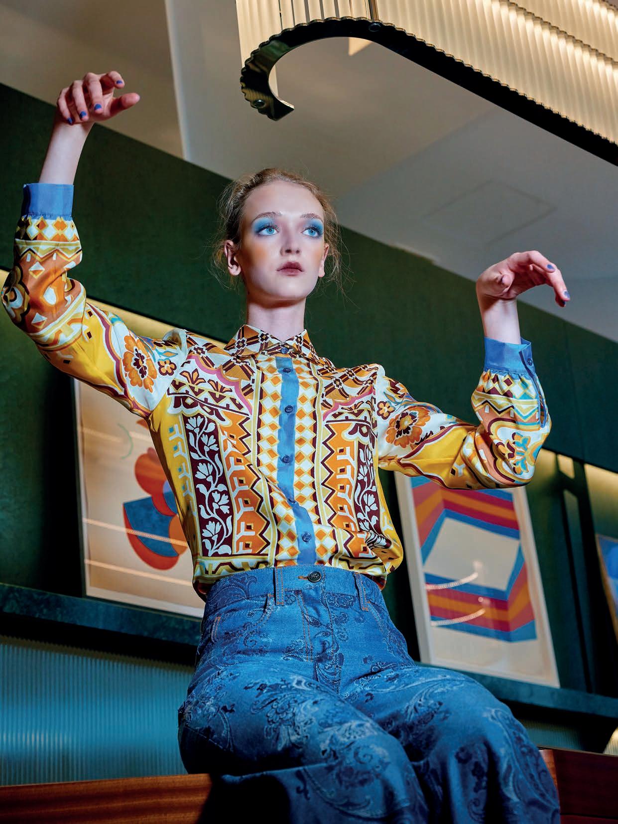 In einer Welt, die von Normen geprägt ist, erleben wir ein faszinierendes Phänomen: die Rückkehr zur Exzentrik. Wir stehen an einer Schwelle zu einer Ära, in der das Anderssein gefeiert wird. Inszeniert haben wir unsere Fotostrecke im neuen Luxus-Lifestyle-Hotel Kimpton Main Frankfurt, in dem eine selbstbewusste Handschrift auf die elegante Bauhauszeit trifft.