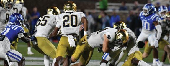 With less than one minute on the clock and Duke ahead by one point, Notre Dame’s offense was in position for a field goal attempt. Instead, Audric Estime burst through the Blue Devil defense for a game-winning 30-yard touchdown. Starting deep in Irish terrritory, Hartman led the offense on a 95-yard drive to victory, moving the Irish to 5-1 for the season.