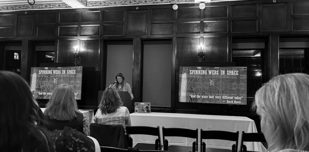 Alongside her book, Christman read from her newest essay “Spinning Webs in Space.” The room was filled with laughter at her anecdotes and retelling of her childhood.