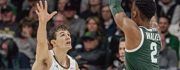 of the Fighting Irish plays during Notre Dame men’s basketball’s victory over then-No. 20 Michigan