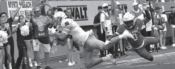 Irish junior tight end Mitchell Evans catches a pass for two yards from graduate student quarterback Sam Hartman against NC State. see WrAP PAGE 10