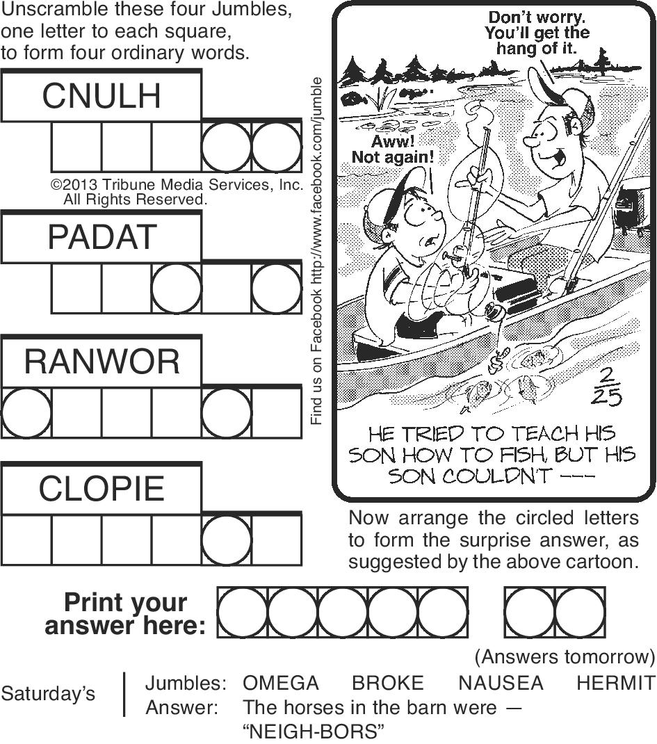 CAPRICORN (Dec. 22-Jan. 19): g o with the flow, find your rhythm and make your mark. Take care of business before moving on to something that’s more fun. Don’t let a money matter disrupt a friendship or your plans. Don’t trade in one set of problems for another.