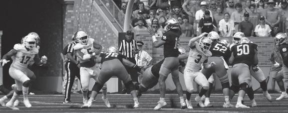 Let’s start with an obvious but much-needed qualityof-competition caveat. The Irish have beat up on two opponents they were never going to lose to, and while nc s tate wasn’t great in Week 1, it’s worth remembering that U c onn wasn’t the typical punching bag they’ve been in years past. That being said, it feels like the Irish are flying high coming into this game. If b rennan Armstrong had better weapons around him, I would be a bit more worried. e ven on the road, the Irish are clearly the superior team.