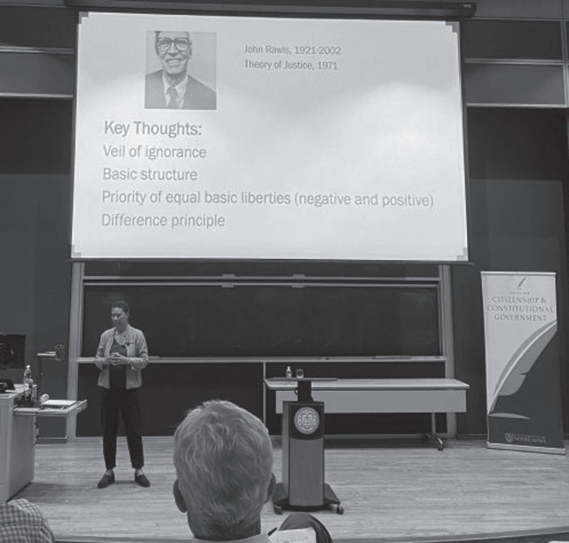 Author Danielle Allen presents on her latest book ‘Justice as a Means of Democracy’ while discussing democracy in the U.S.