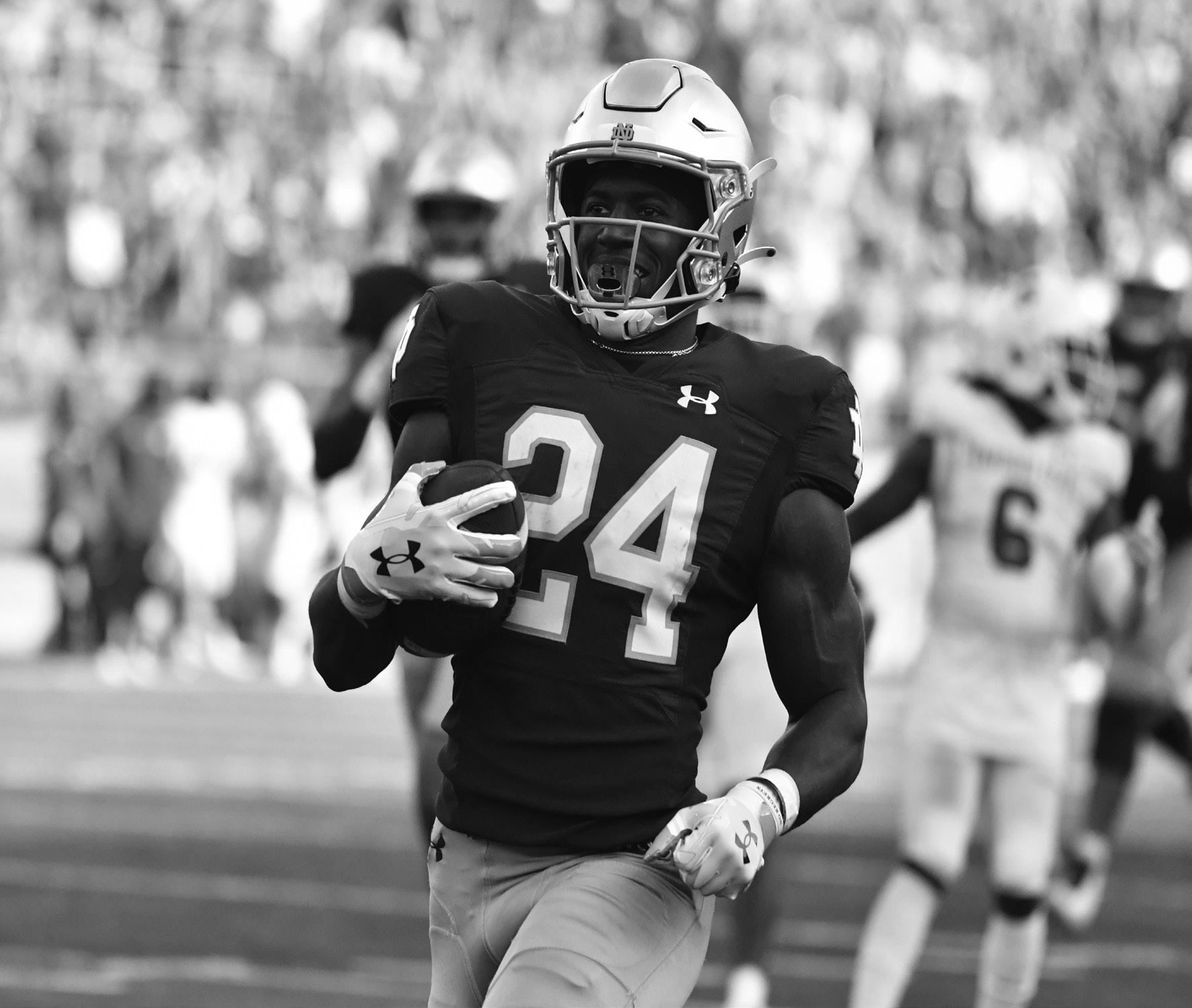 Irish sophomore running back Jadarian Price beams as he runs the ball into the endzone after a 40 yard catch in the Irish’s 56-3 win against Tennesse State University on Saturday, Sept. 2 at home.