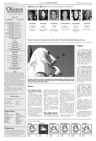 www.ndsmcobserver.com P.O. Box 779, Notre Dame, IN 46556 024 South Dining Hall, Notre Dame, IN 46556
