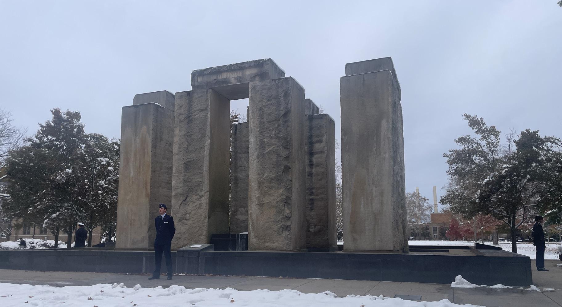Stone, a fireside chat with admiral Bill Houston after he visited the the O’Brien Notre Dame International Security Center and the Keough School and a luncheon and and army breakfast with general Bryan Fenton. Additionally, ROTC students were invited to have lunch with Houston and participated in a 24-hour vigil at the Clarke Memorial Fountain. The Mendoza College of Business also