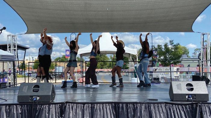 Notre Dame’s ASCEND K-pop dance club showcases their skill and passion for music via a performance live on stage at South Bend’s ethnic festival Fusion Fest. striking a pose to conclude their choreography.