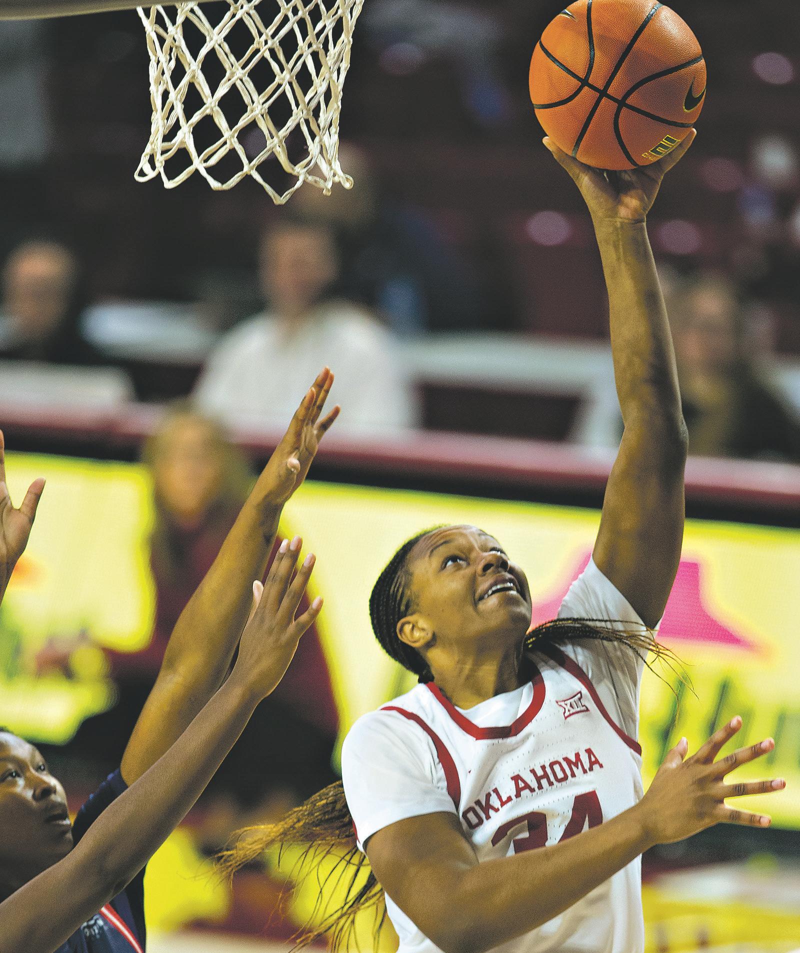 Part of their leadership will be aimed toward nurturing a pair of freshmen in 6-foot-4 forward Kiersten Johnson and 6-foot3 center Beatrice Culliton. Their development will be key for the Sooners, who conceded an NCAA all-time record 61 points to 6-foot-6 center Ayoka Lee in their Jan. 23 matchup against Kansas State last season.