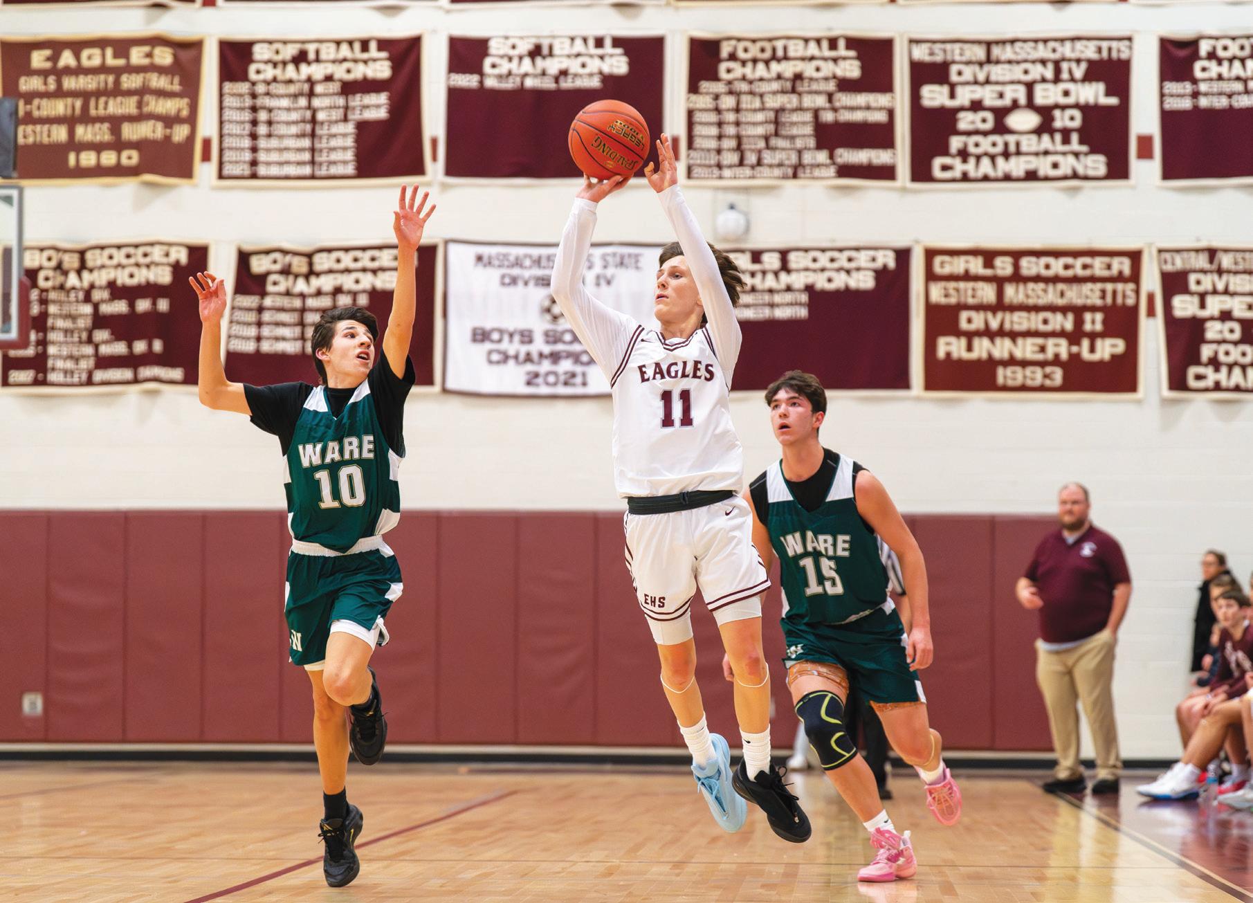 Logan Boyle throws the ball to an open teammate in the corner for a three pointer.