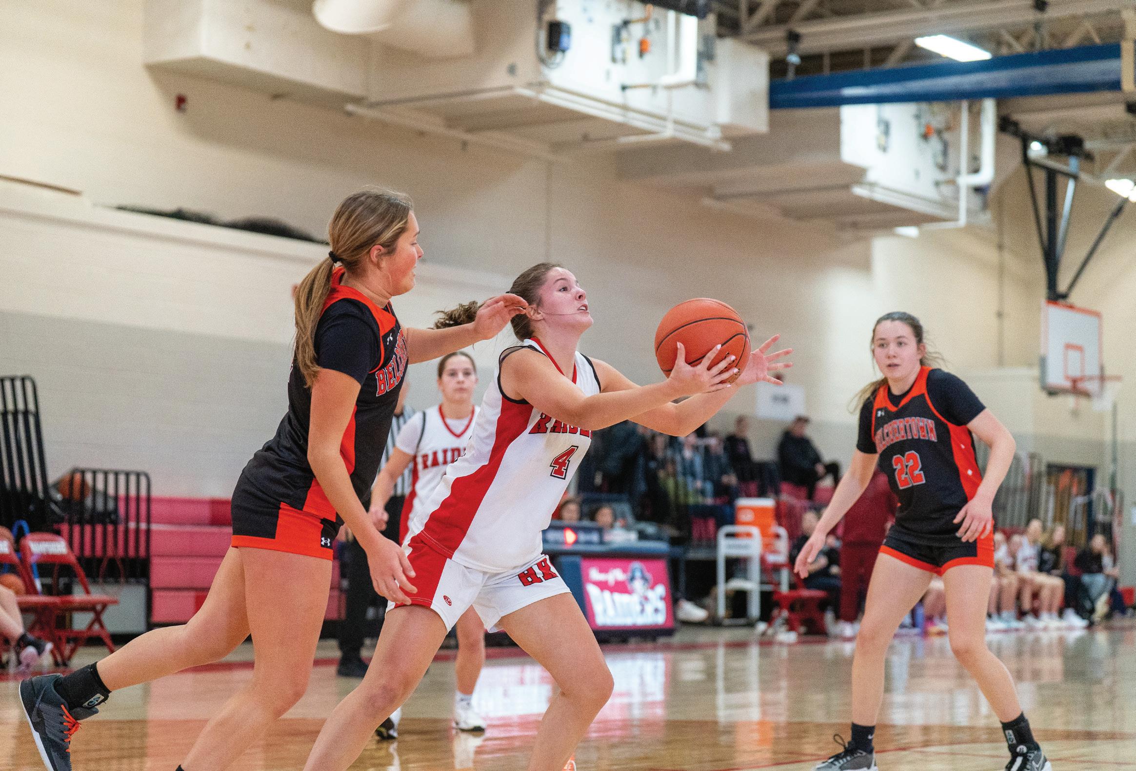 The Hampshire Regional girls basketball team narrowly defeated Belchertown by a score of 66-63 on Feb 8.
