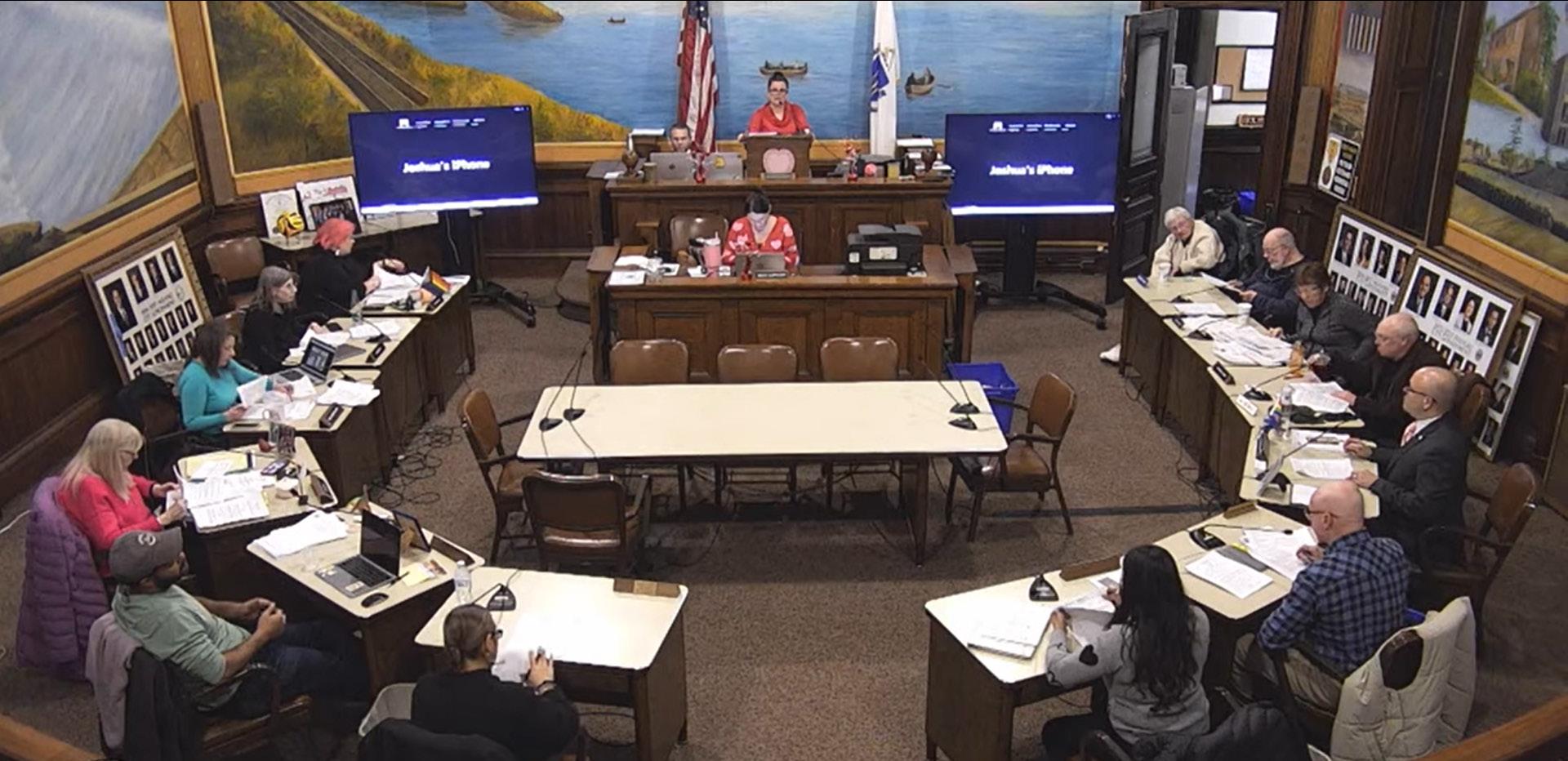 The Holyoke City Council discusses the proposed Finance Department restructuring at the Feb. 3 meeting.