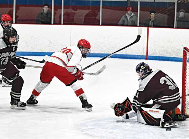 Jack Rustico’s wrist shot is on net but saved by Donald Rogers of Ludlow.
