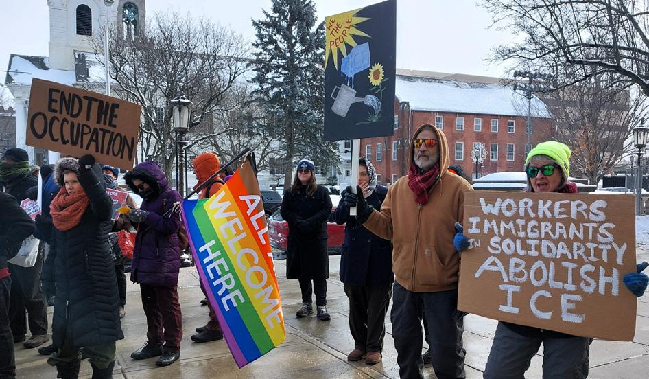 Speaking on behalf of the Western Massachusetts Area Labor Federation, Jeff Jones said, “We’re here today standing in solidarity with our fellow workers in Minneapolis, Chicago, L.A. or wherever the current regime sends its army of occupation.” He described ICE as an “unaccount-