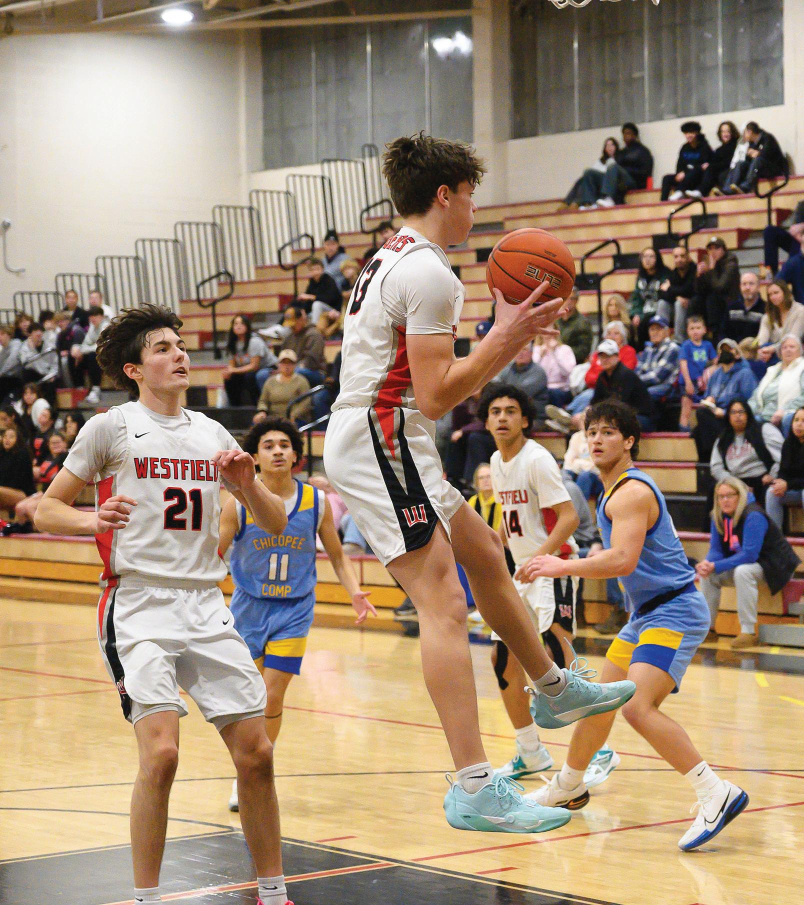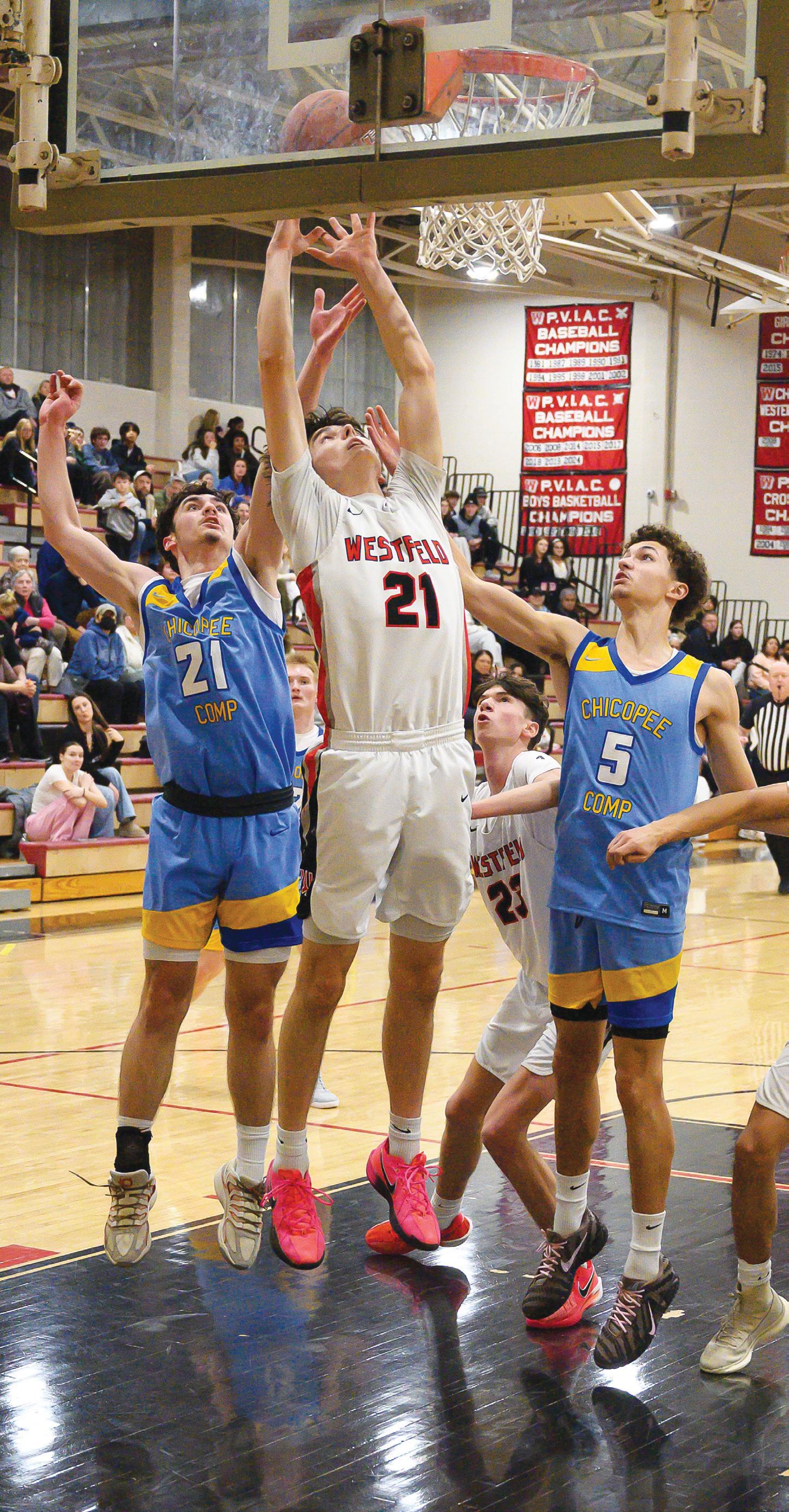 The Westfield High boys basketball team before their January 12 game with Chicopee Comprehensive.