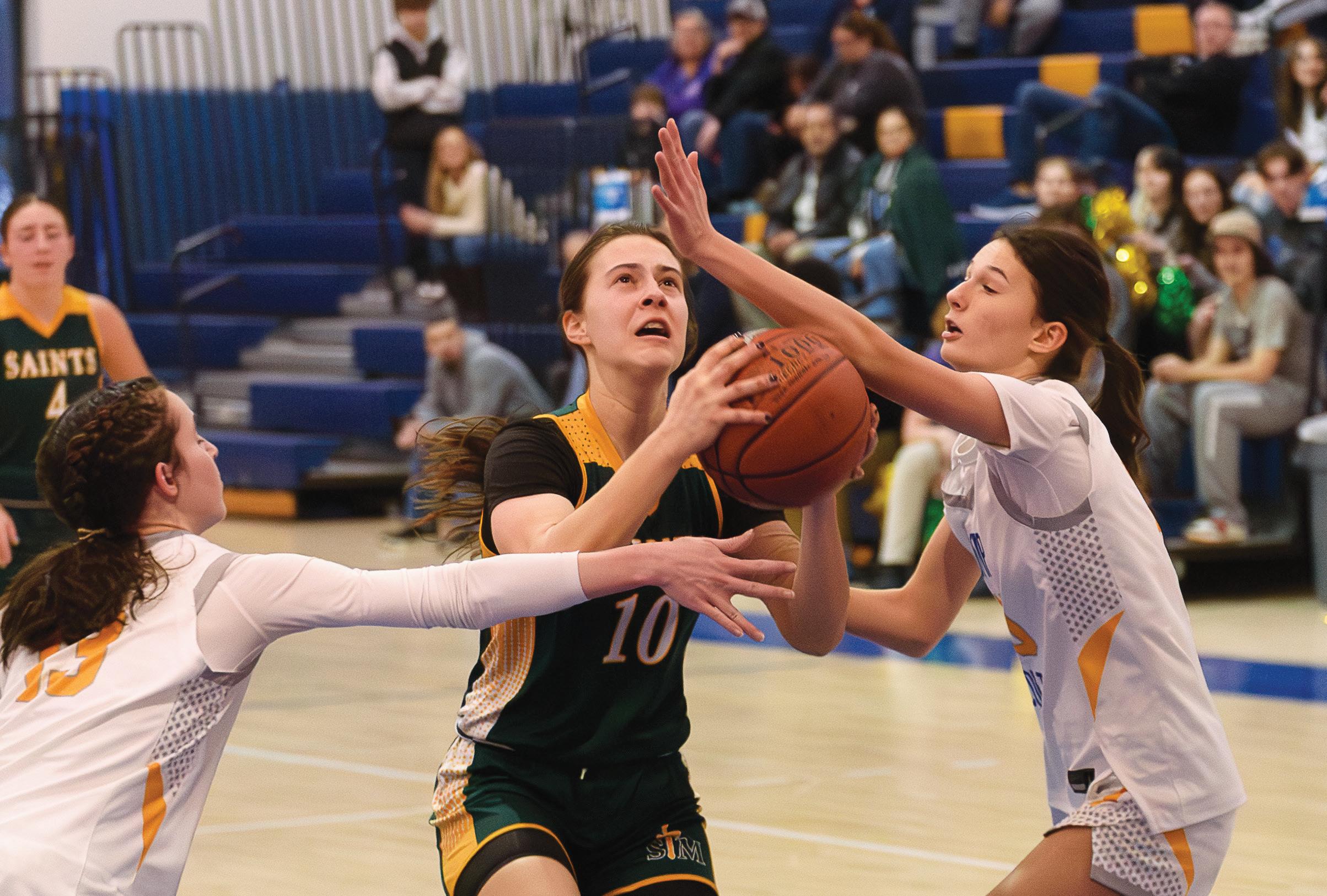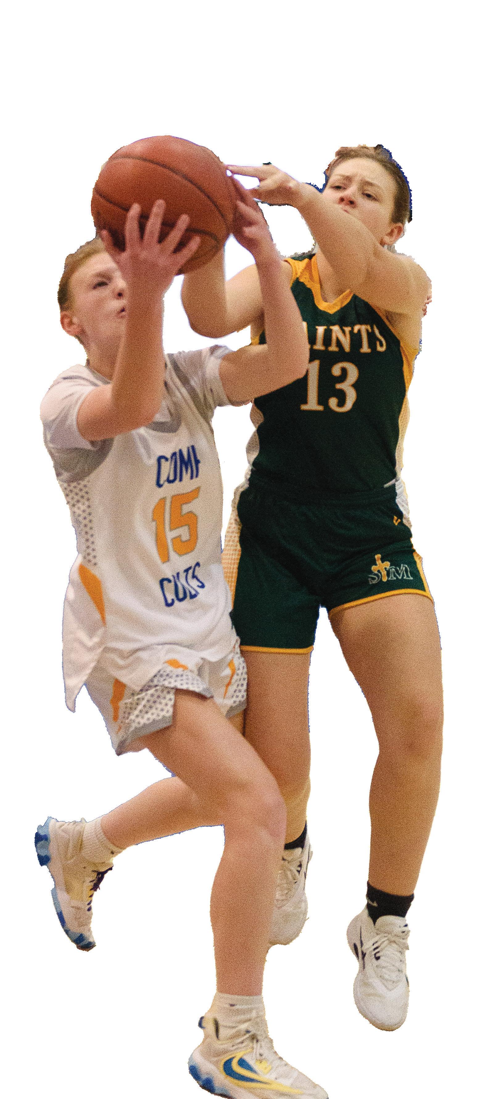 Comp's Caitlin Belanger and St. Mary's Maddie Szemela fight for a rebound.