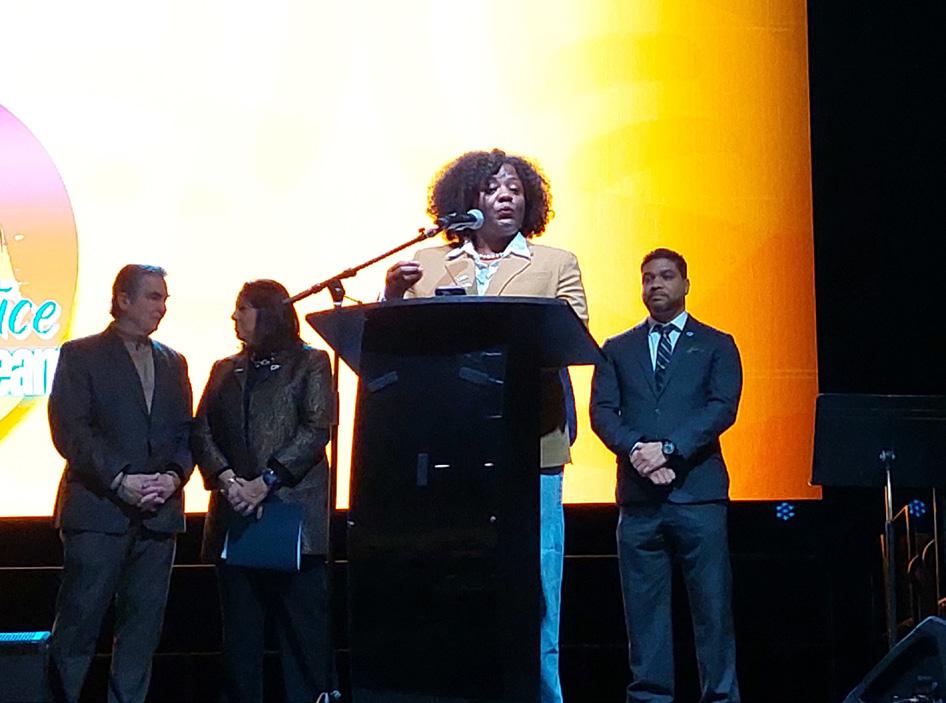 The theme of this year’s celebration was “Restoring Justice: Reclaiming the Dream.” Springfield Schools Superintendent Sonia Dinnall said children are “the carrier of the dream.” True to her roots as an educator, Dinnall said, “Reclaiming is a verb. It is an action word.” She continued, “It takes the collective efforts of each and every one of us in this room today to do our part to reclaim the dream. And guess what? I dream without action is merely a fantasy.”
