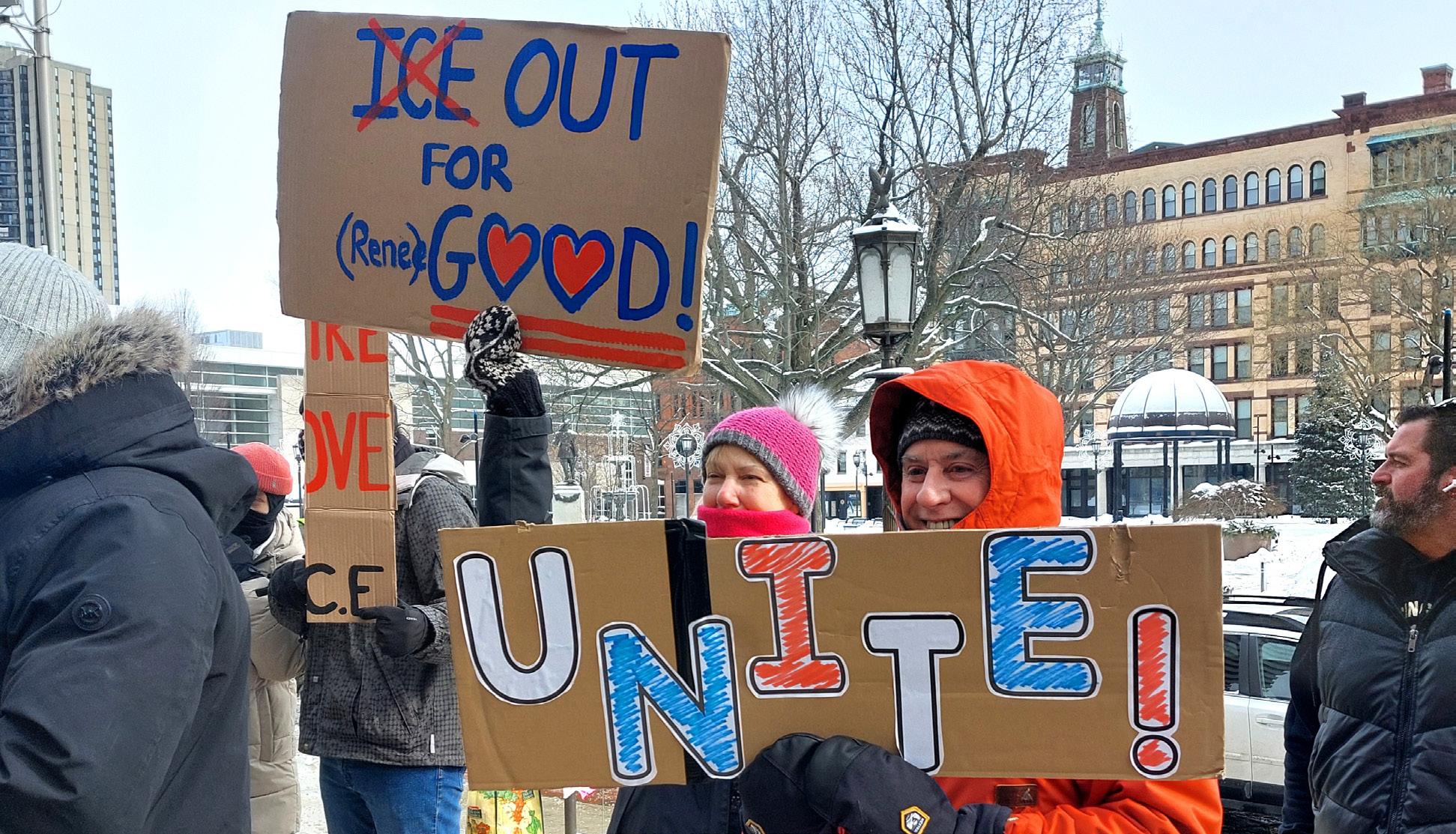 SPRINGFIELD — Bitterly cold temperatures did not stop more than 150 members of area unions from coming out on Feb. 7 to rally against actions by U.S. Immigration and Customs Enforcement in Minneapolis, Minnesota and elsewhere under the administration of President Donald Trump.