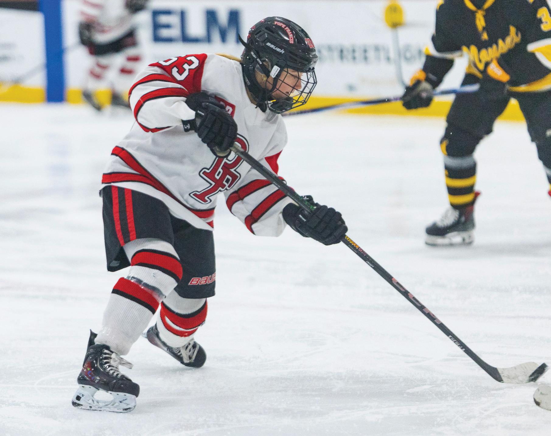 The Pope Francis Preparatory School girls’ hockey team lost 4-3 to Nauset High School as they hosted their Senior Night on Jan. 31, at Amelia Ice Center in Westfield.