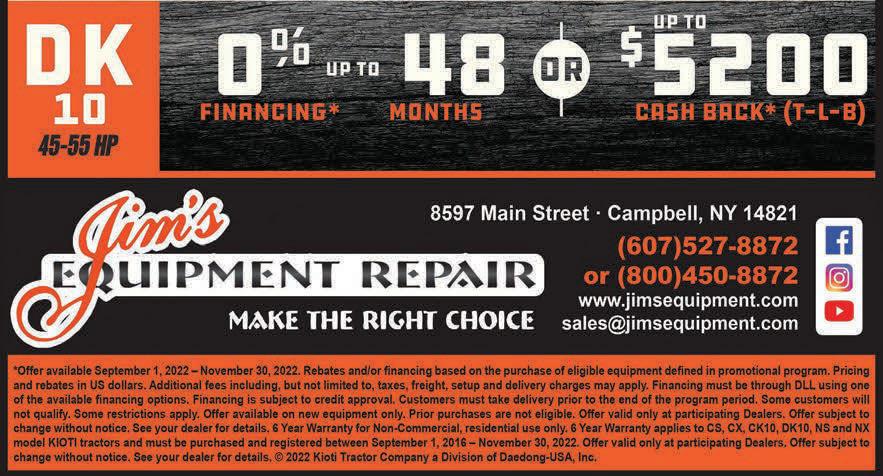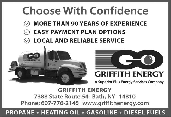 SOUTHERN TIER SHOPPER TUESDAY, NOVEMBER 22, 2022 OVER 23,500+ CIRCULATION 17 LUMBER Route 54, Bath, NY (607) 776-2051 Shirley’s WOOD PELLETS COAL BAGGED WE DELIVER WOOD PELLETS COAL BAGGED FOR ALL YOUR PUMPING NEEDS SERVING STEUBEN COUNTY RESIDENTIAL and COMMERCIAL EMERGENCY SERVICE AVAILABLE YEAR 'ROUND INSTALLATION OF COMPLETE SEPTIC SYSTEMS PHONE: 607-776-1700 OR 1-800-279-0044 P.O. BOX 707, Bath, New York 14810 After Hours Emergency: 607-776-6131 PECA NS NEW CROP GEORGIA Helen: 607.776.2987 Ruth: 607.329.7804 DAVENPORT AND TAYLOR AUXILIARY IRA DAVENPORT MEMORIAL HOSPITAL AVAILABLE NOW! AHuntenti s! ONLY $179 LB CATON Butcher Shop CATON Shop STOCK UP NOW AND SAVE! 11451 Tobeytown Rd., Pine City, NY 607.524.6988 AHuntenti s! BONELESS SKINLESS CHICKEN THIGHS DEERHunt Hunt PROCESSING $85 WE ALSO MAKE SAUSAGE, BOLOGNA, SNACK STICKS, HOT DOGS & MORE! ONLY $199 LB BONELESS SKINLESS CHICKEN BREAST RED HOT CHICKEN SALE LEAN GROUND BEEF $3.99 LB. 50 LB. OR MORE $3.59 LB. 256.605.6008 ANDREW DIBBLE CONSTRUCTION ANDREW DIBBLE CONSTRUCTION LICENSED & INSURED 256.605.6008 CANISTEO, NEW YORK dibbleandrew904@gmail.com SEVERAL VARIETIES OF APPLES FERMENTATION SUPPLIES CUSTOM PRESSING CIDER DONUTS 6226 Lain Road, Canisteo, New York Phone: 607.324.1349 E.H. LAIN Cid Mill Closing November 23rd Cid Mill At 7:00 PM HOURS: MONDAY AND WEDNESDAY 10:00 AM 6:00 PM TUESDAY 9:00 AM 4:30 PM • THURSDAY 9:00 AM 12:00 PM FRIDAY 9:00 AM 4:30 PM • CLOSED SATURDAY AND SUNDAY CA N & BOT TLE RETURN Front Door Drop Off No Quantity Limits 7984 Hemlock Rd, Bath , NY Now Accepting NYS 5¢ Water Bottles C ON R A D’S 6 0 7.7 76 .74 3 5 6 07.7 76 .7435 Precision Painting Services “Professionalism at its Best” Interior - Exterior Custom Painting Staining Home Repair Serving the Southern Tier CALL TODAY: 607.684.5368 FREE ESTIMATES • FULLY INSURED Interested In Owning Your Own Propane Tank To Save Money? Swee t water No Start Up Fees • Prices Are Always Current Rate To Join e Co-op, Call 60 7 20 3- 0153 To Purchase A Tank, Call 315 -5 31-8258 Propane C o - op AND COLLISION QUALITY WORK WITHOUT THE WAIT www.campbellsrepairandcollision.net 1193 BOSSARD ROAD • DUNDEE , NY 6 0 7. 24 3 . 9 270 6 0 7. 24 3 . 9 270 Parts & Service for All Major Brands Get A FREE Quote On A Brand New Zero Turn Mower Titus M. Hoover • 3752 Prosser Rd., Branchport, NY Authorized Dealer for 315-595-2894 315-595-2894 Free Estimates! Call 6 07 377-1950 Lawn Mowing • Trimming • Snow Plowing Landscaping Tree Trimming Driveway Sealing Fall Yard Clean-Ups • Pressure Washing Gutter Cleaning • Home Repairs & Much More! countryside property maintenance countryside Chad Cambra ( Owner/Operator ) 21 GOODHUE ST • ADDISON, NY WE ARE THE PREMIER BARGAIN STORE OF THE FINGER LAKES! 848 ROUTE 14A, PENN YAN, NY • 315.536.2253 ( 1ST PLACE N. OF HORNINGʼS GREENHOUSE ON LEFT) KITCHENWARE • HOME DECOR • TOYS • EXERCISE EQUIPMENT BEDDING • CURTAINS • BABY ITEMS • SMALL APPLIANCES HOME MADE COOKIES & BREAD • MUCH, MUCH MORE!!! HOURS: MONDAY - SATURDAY 9AM - 5PM • CLOSED SUNDAY OPEN FRIDAY NIGHTS UNTIL 8:00 PM We Donʼt Have Everything, But We Sure Have A Lot! DECKS • ADDITIONS • STAINING NEW REPLACEMENT WINDOWS AND BRUSH HOGGING 607.329.2578 YOU DREAM IT, WE BUILD IT ! SPECIAL!!! ROOFING AND POLE BARNS www.mjcontractingwesternny.com Free Estimates • Fully Insured • References SPECIALS ON WINDOWS, VINYL SIDING AND POLE BARNS! MJ CON T RACT ING